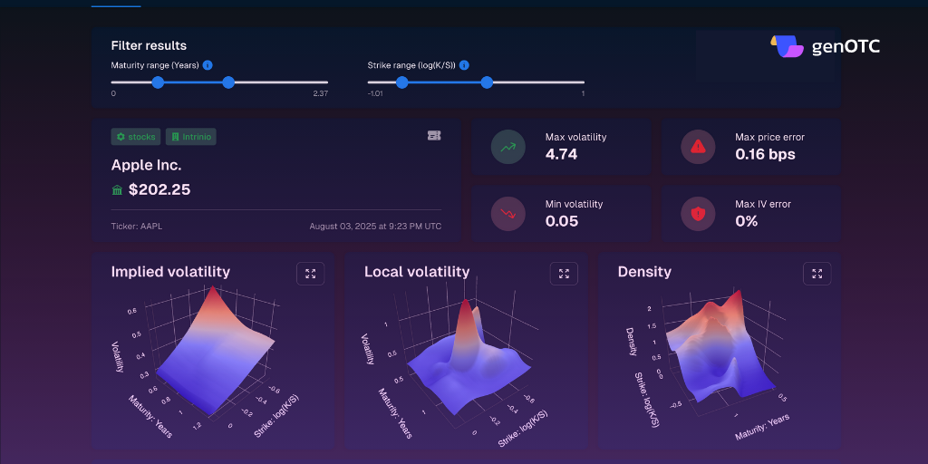 Attendees will see how genOTC, a next-generation SaaS platform, turns complex mathematics into robust pricing and risk analytics software. Designed for scalable, arbitrage-free , and real-time calibration, genOTC helps traders, quants, and risk professionals make confident, accurate, and consistent data-driven decisions.